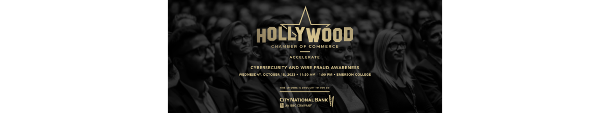 DESCRIPTION: Dive into a critical and relevant topic on the Hollywood Chamber's Accelerate, where we shed light on the pressing issue of Cybersecurity and Wire Fraud. With expertise from the fraud department at City National Bank and first-hand insights from the FBI and LAPD's cybersecurity task force, you're guaranteed an eye-opening experience.